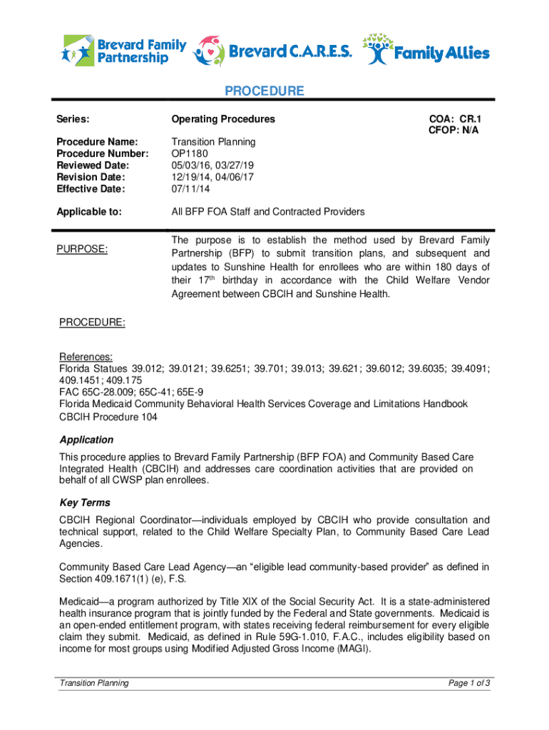 Effective Date:Transition Planning