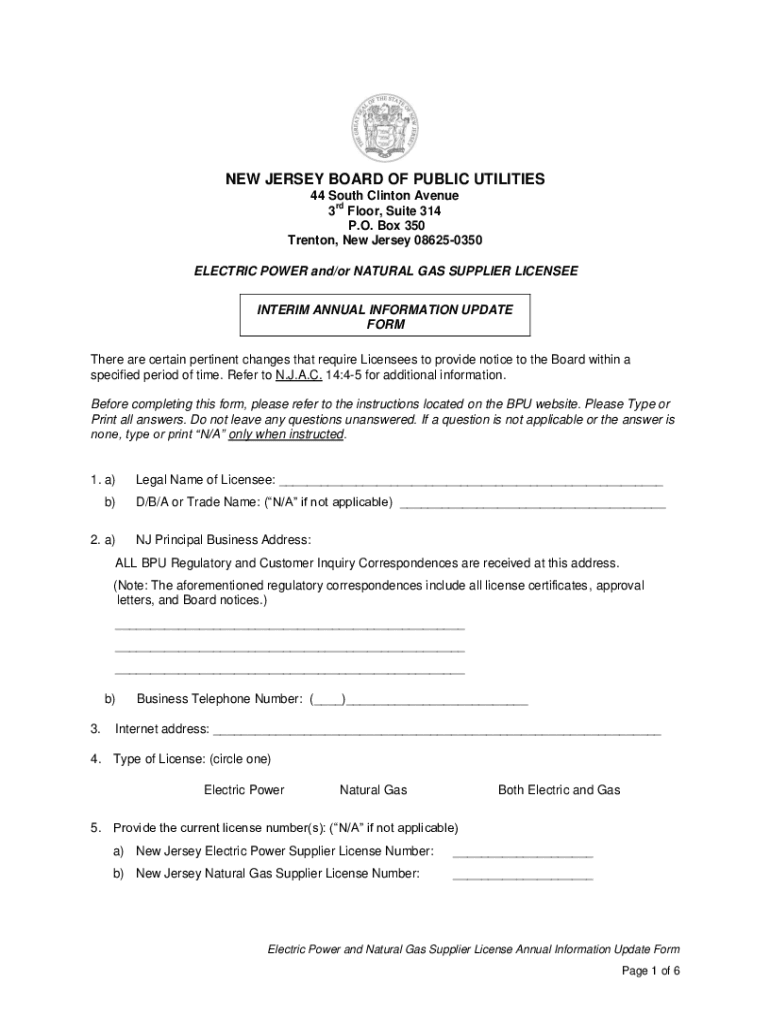 Get the free NEW JERSEY BOARD OF PUBLIC UTILITIES 44 South Clinton Avenue ...