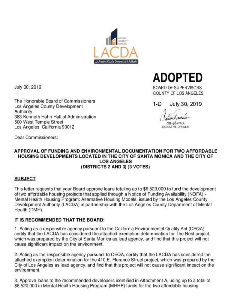 COUNTY OF Los Angeles Honorable Board of Commissioners