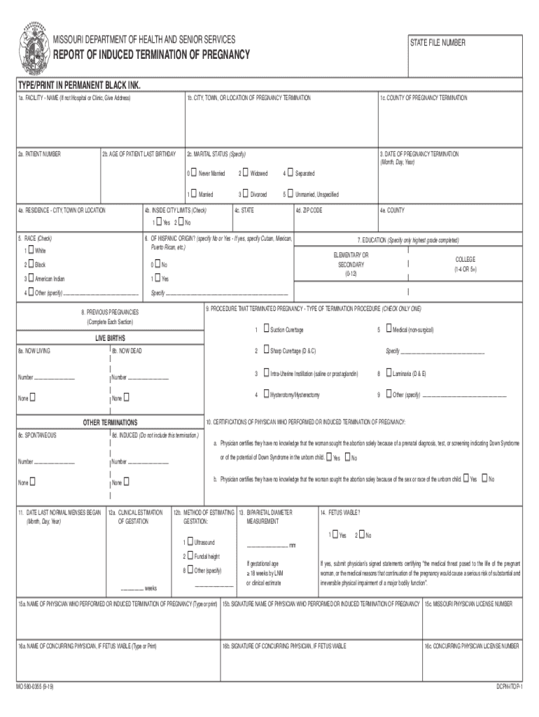 Get the free 580-0355 (9-19) REPORT OF INDUCED TERMINATION OF PREGNANCY. MISSOURI DEPARTMENT OF H...