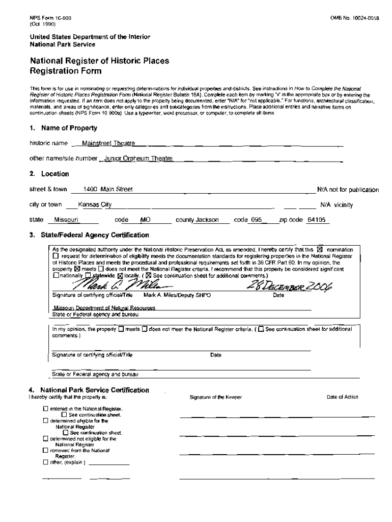 NPS Form 10900 (Oct. 1990)United States Department of the Interior National Park ServiceNational Register of Historic Places Registration Form This form is for use in nominating or requesting determinations