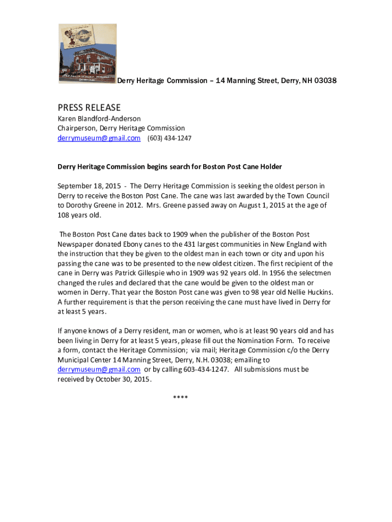 Get the free Derry Heritage Commission 14 Manning Street, Derry, NH 03038