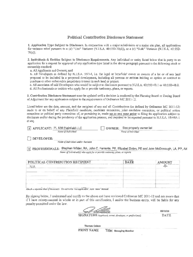 Get the free Political Contribution Disclosure Statement