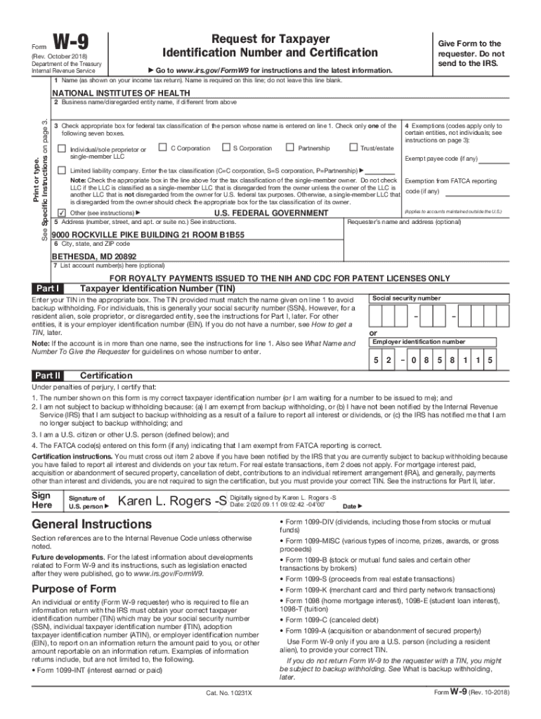 Get the free Form W-9 (Rev. October 2018) - National Institutes of Health