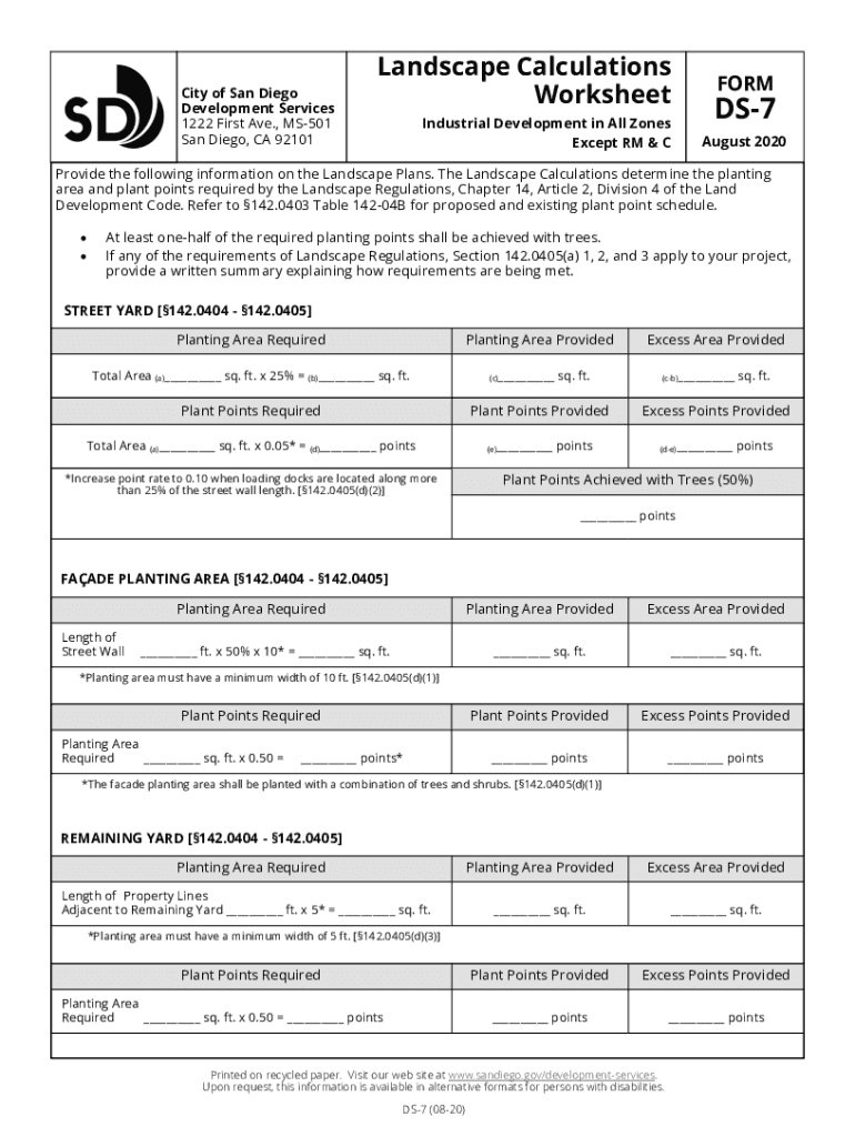 Get the free Landscape Calculations Worksheet FORM 6 - San Diego