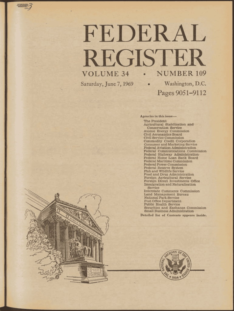 REGISTER O L U M E 34Saturday, June 7, 1969, N U M B E R 109Washington, D.C. Pages 90519112Agencies in this issue President