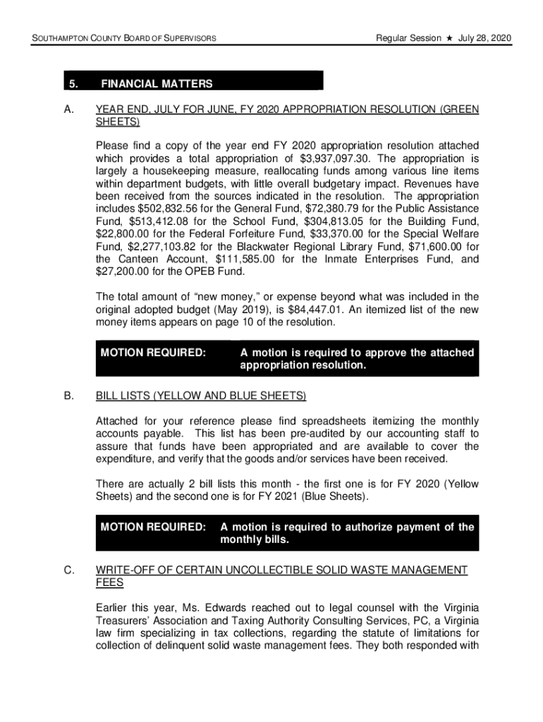 Regular Session i July 28, 2020SOUTHAMPTON COUNTY BOARD OF SUPERVISORS5.