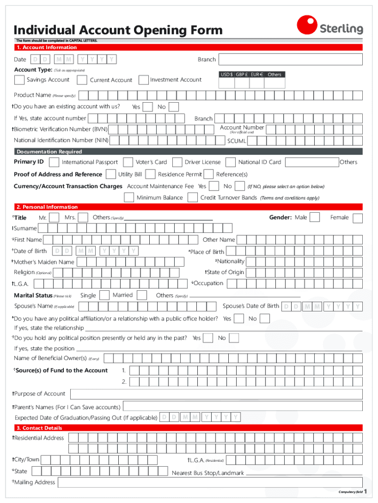 Any individual or entity opening a new account with a financial institution is required to fill out and file a new account opening form.