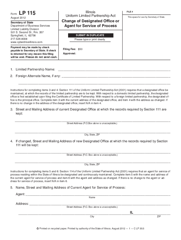 Illinois LP 115 is a form required to be filed by limited partnerships in the state of Illinois.
