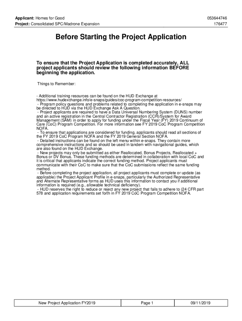 Applicant: Homes for Good Project: Consolidated SPC/Madroño Expansion053644746 176477Before Starting the Project Application ensure that the Project Application is completed accurately, ALL project