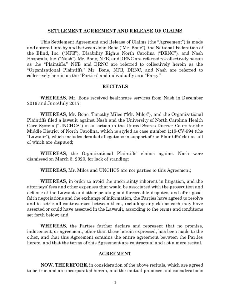 This Settlement Agreement and Release of Claims (the Agreement) is made