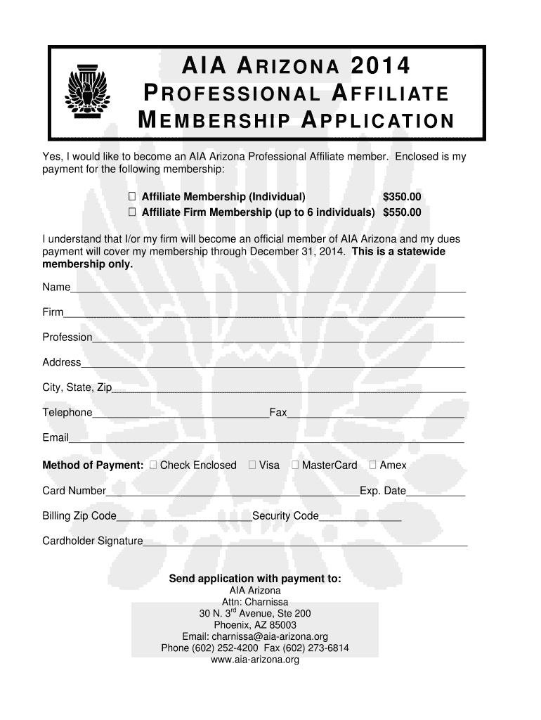 Get the free Affiliate Application 2014 - AIA Arizona - aia-arizona