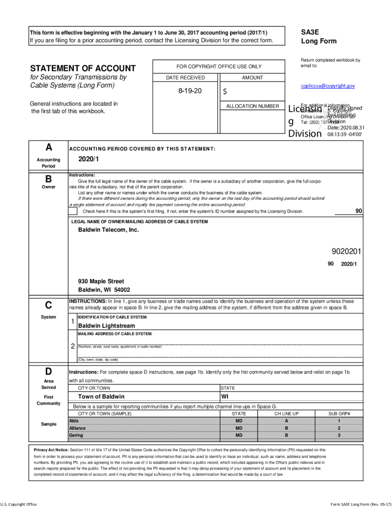 Long Forms form is effective beginning with the January 1 to June 30, 2017, accounting period (2017/1)If you are filing for a prior accounting period, contact the Licensing Division for the correct