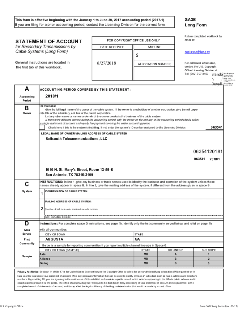 Long Forms form is effective beginning with the January 1 to June 30, 2017, accounting period (2017/1)If you are filing for a prior accounting period, contact the Licensing Division for the correct