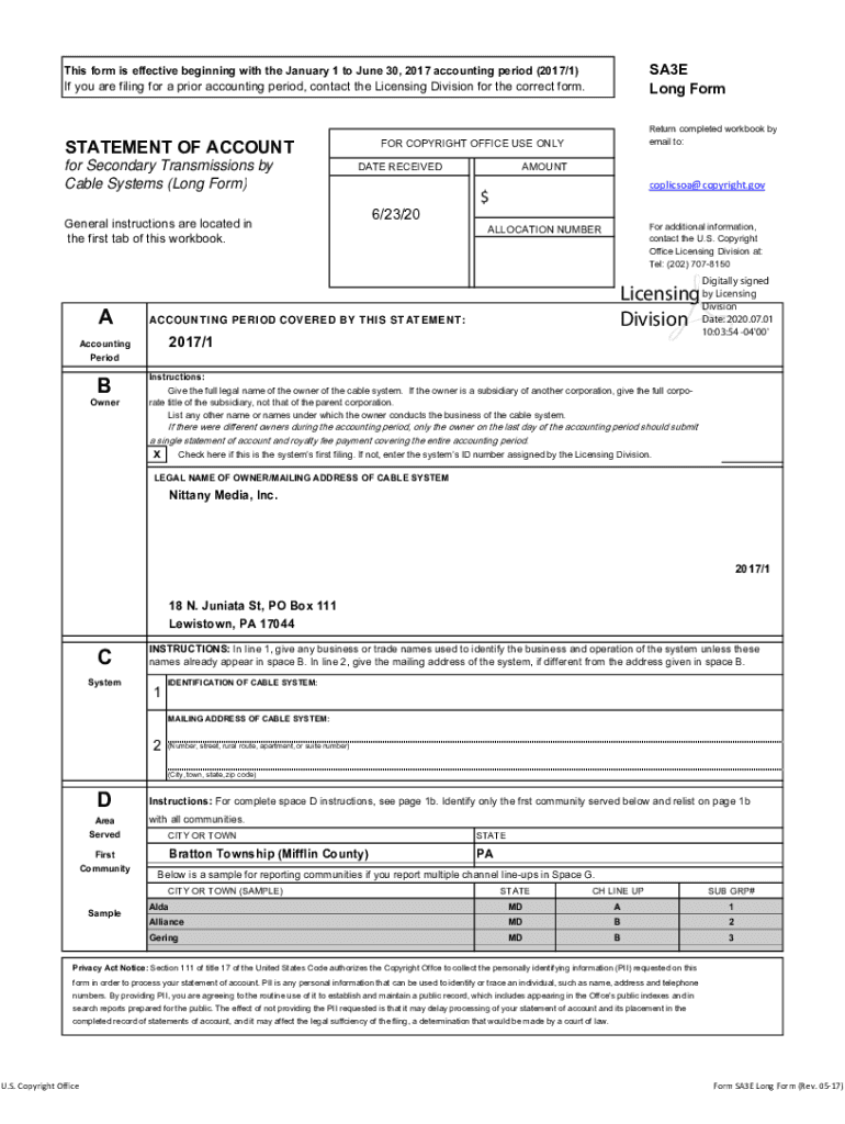 Long Forms form is effective beginning with the January 1 to June 30, 2017, accounting period (2017/1)If you are filing for a prior accounting period, contact the Licensing Division for the correct