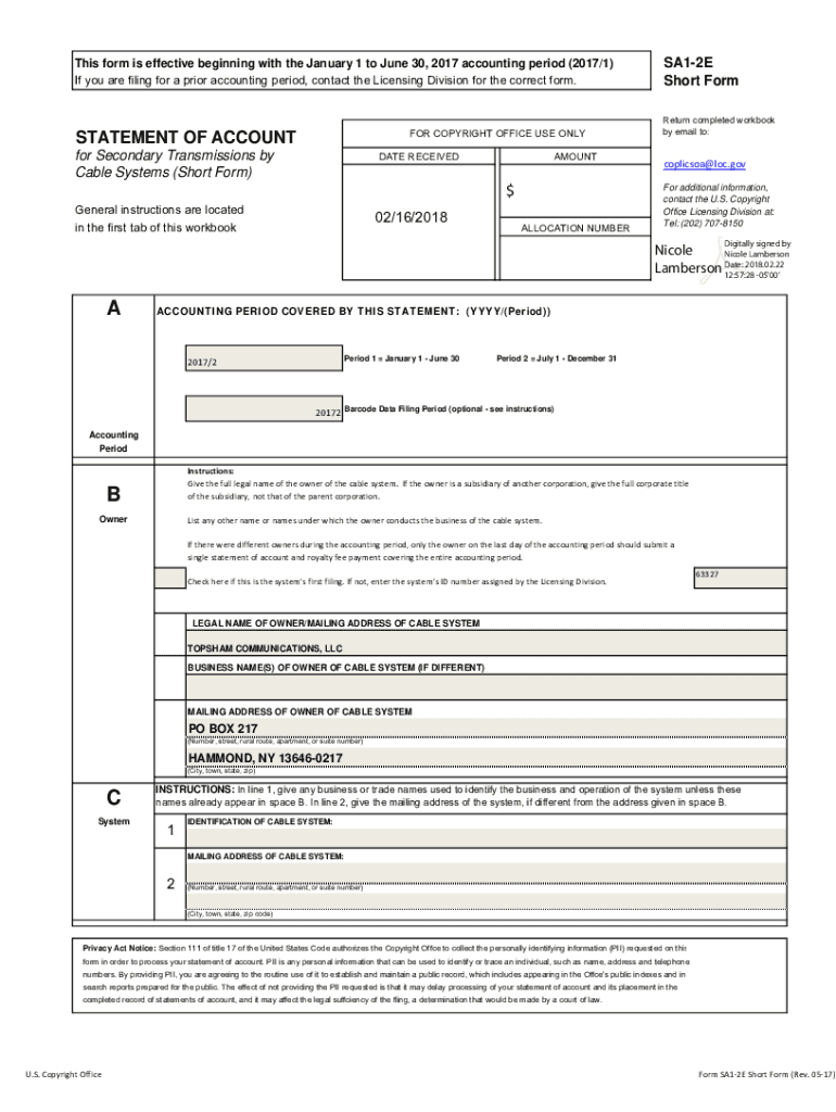 To fill out the paperwork for Topsham Communications LLC, you will need to provide information such as the company's name, address, ownership structure, and any relevant financial information.