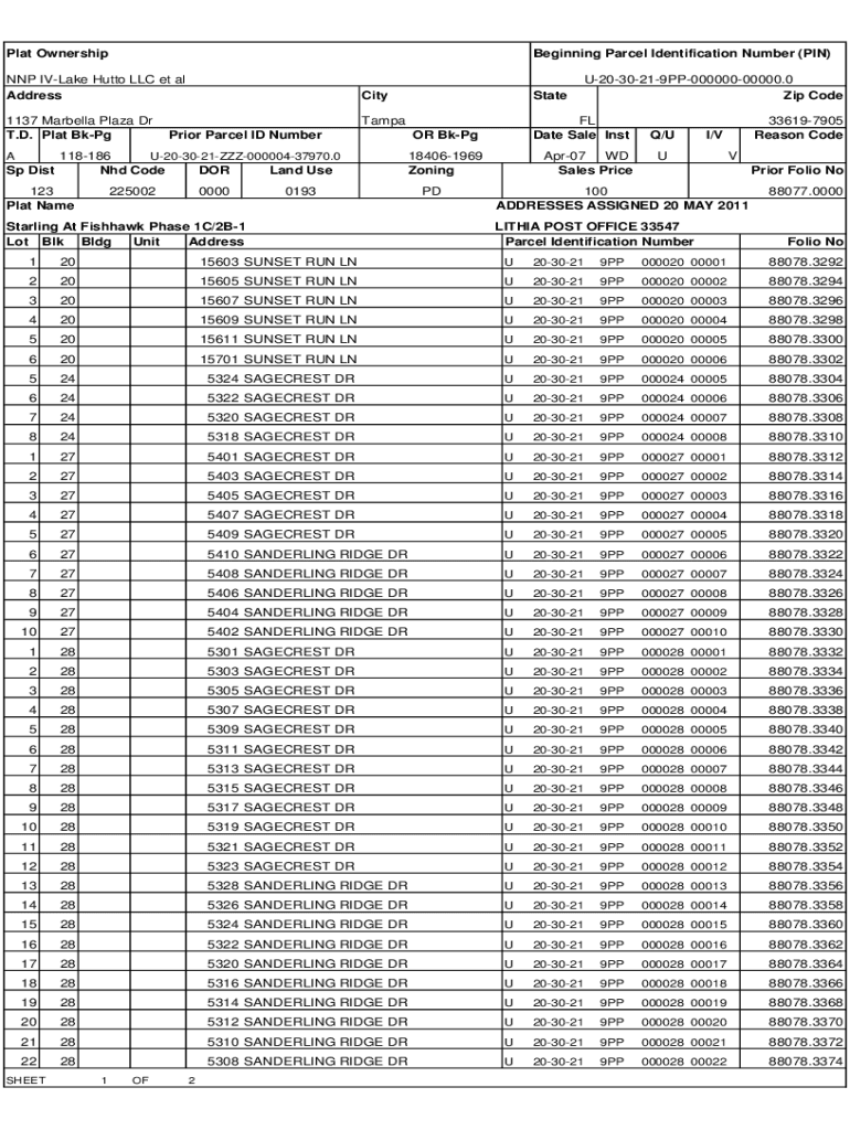 Plat OwnershipBeginning Parcel Identification Number (PIN)BNP Lake Bhutto LLC et al.