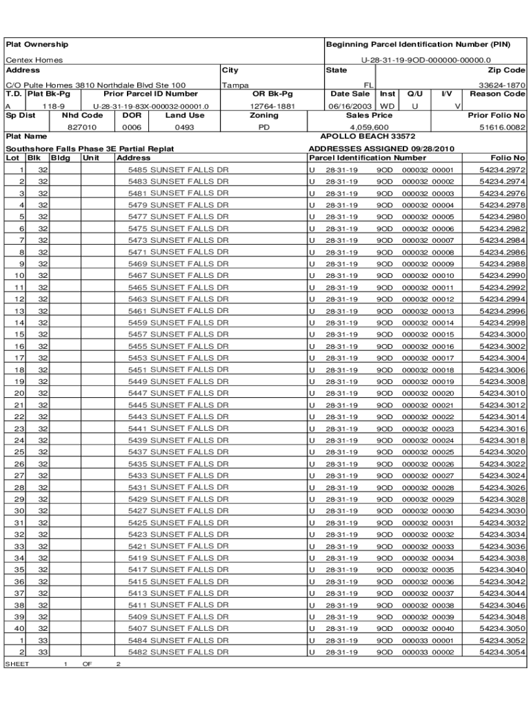 Plat OwnershipBeginning Parcel Identification Number (PIN)Center Homes