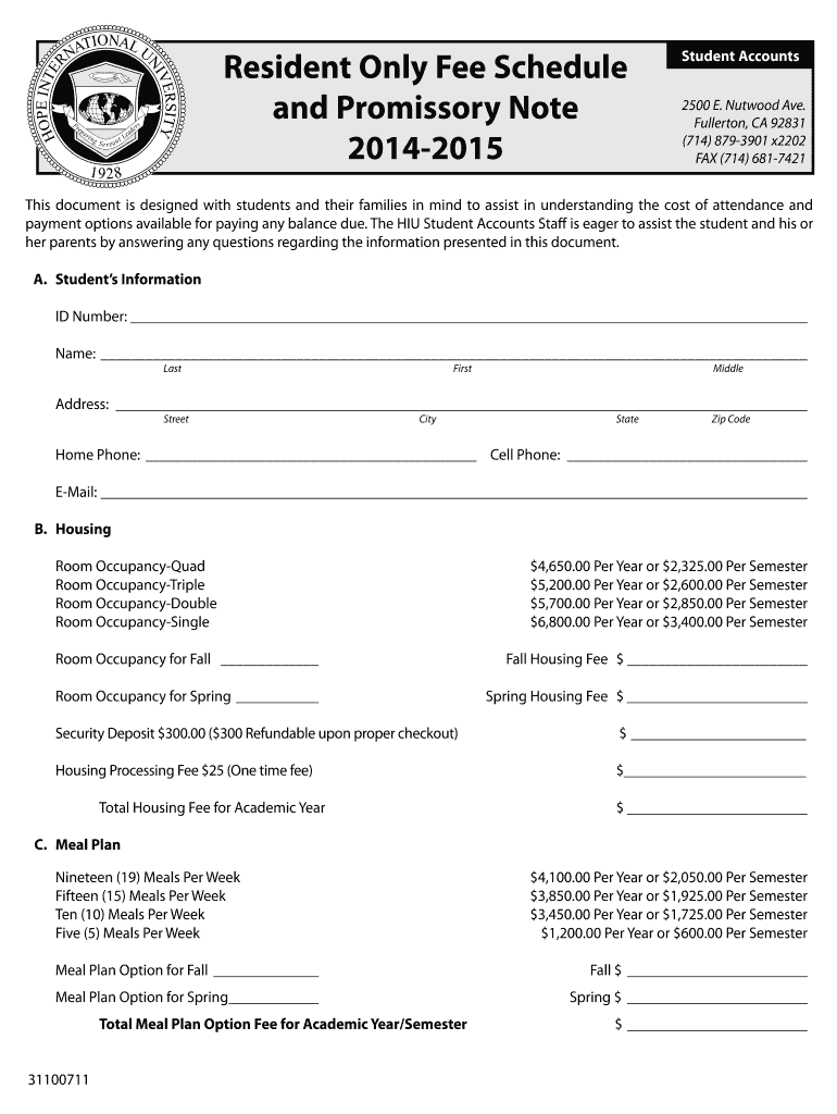 Get the free Student Accounts and Promissory Note