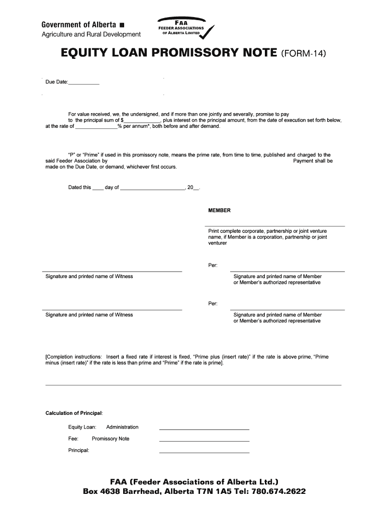 Get the free EQUITY LOAN PROMISSORY NOTE (FORM-14) - feeder association