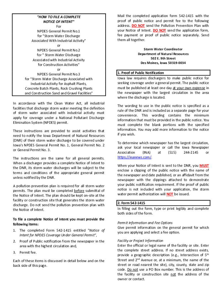 “HOW TO FILE A COMPLETE NOTICE OF INTENT For NODES General Permit No.1 for “Storm Water Discharge Associated With Industrial Activity or NODES General Permit No.2 for Storm Water Discharge Associated