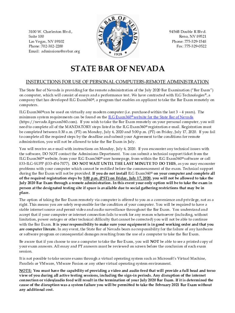Fill out your 2018-2021 nv bar examsoft online with pdfFiller!