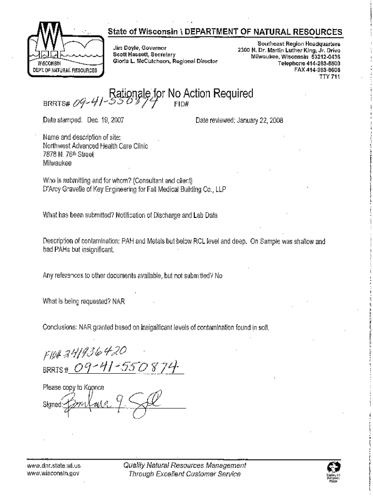 State of Wisconsin DEPARTMENT OF NATURAL RESOURCES Jim Doyle, Governor Scott Has sett, Secretary Gloria L. Escutcheon, Regional Director Southeast Region Headquarters 2300 N. Dr. Martin Luther King,