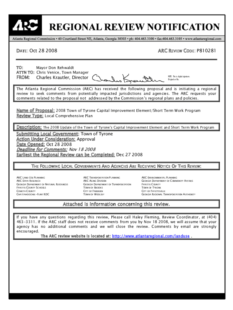 ATTN TO: Chris Venice, Town ManagerFROM:Charles Rattler, Directorate: This is digital signature.
