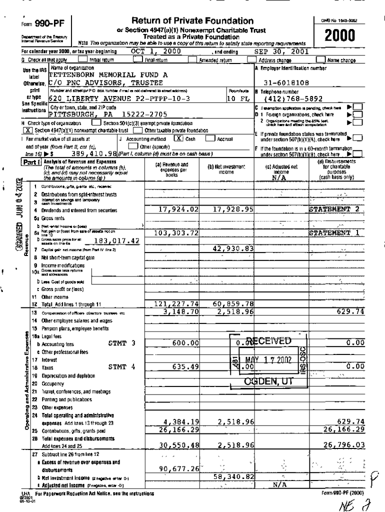 Rev’t+.NT of m, Ty Interest R for or Section 4947(a)(1) Nonexempt Charitable Trust Treated as a Private Foundation OCT 1,G Check all that an E: initial return Mme a1 organization Use the INS20000