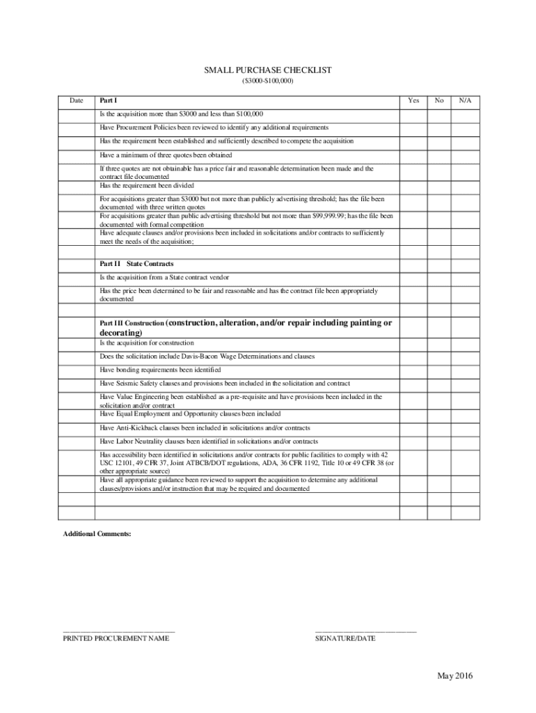 SMALL PURCHASE CHECKLIST