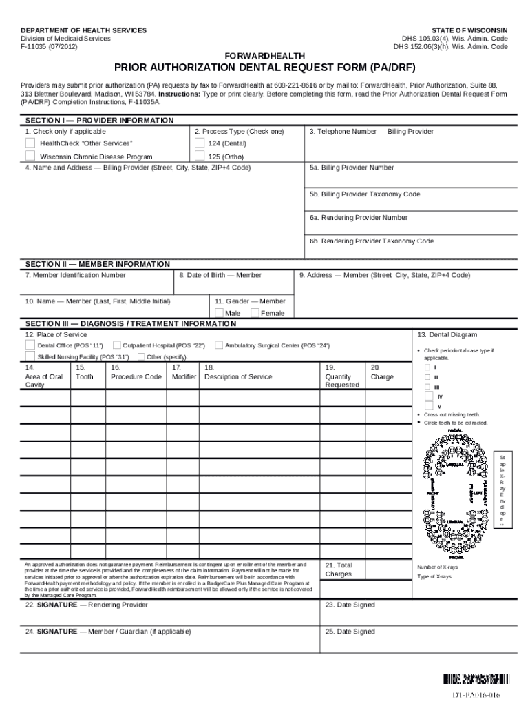 Template PRIOR AUTHORIZATION DENTAL REQUEST (PA/DRF), instructions