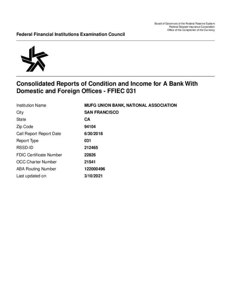 Board of Governors of the Federal Reserve System Federal Deposit Insurance Corporation Office of the Comptroller of the Currency Federal Financial Institutions Examination CouncilConsolidated Reports