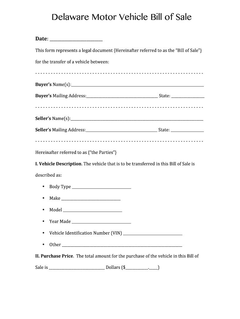 Get the BDelawareb Motor Vehicle Bill of Sale - Free Bill of Sale Forms PDF bb