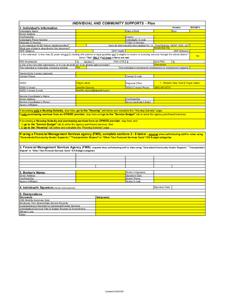 1. Individual\'s InformationINDIVIDUAL AND COMMUNITY SUPPORTS Plan Version:Individual\'s Name: Date of Birth: Sex Street Address: City/State/Zip: County: Individual\'s Phone Number: Individual\'s