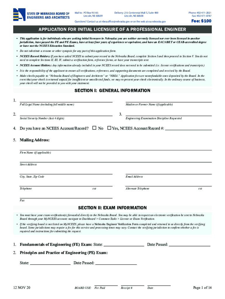 Get the free APPLICATION FOR INITIAL LICENSURE OF A PROFESSIONAL ENGINEER