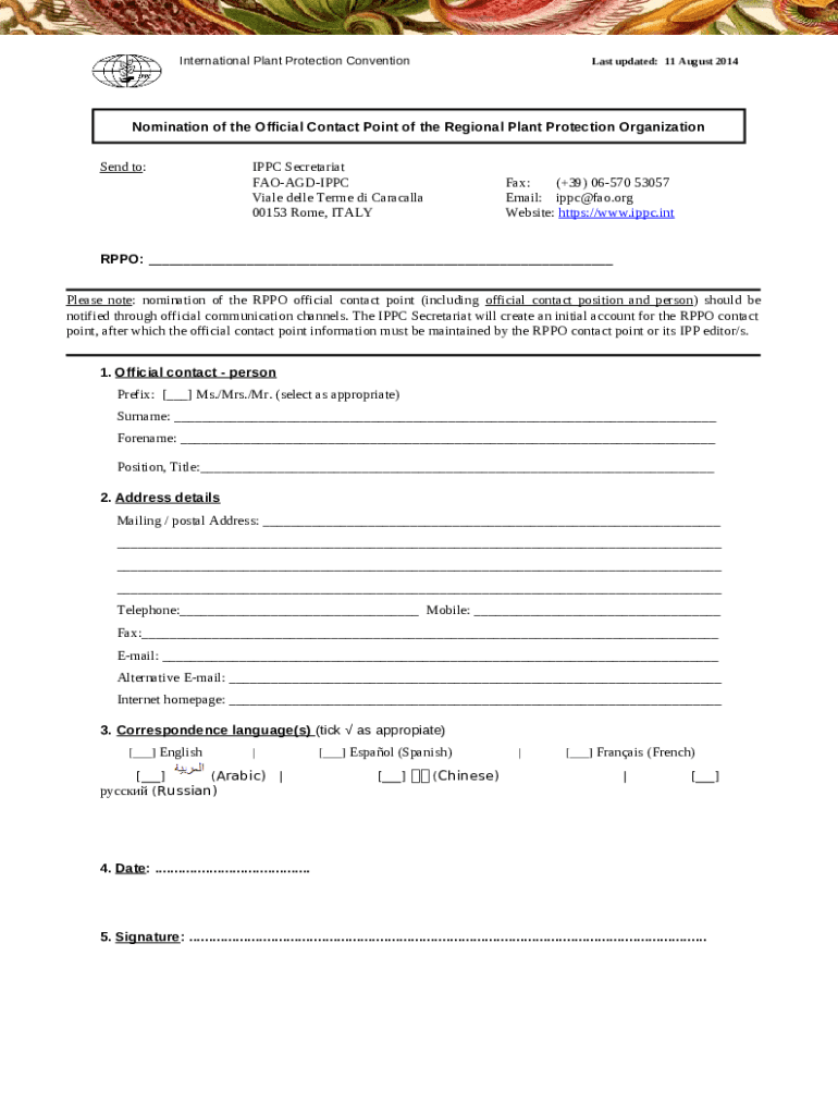 Instructions for the Nomination of the Official Contact Point of the Regional Plant Protection Organization form