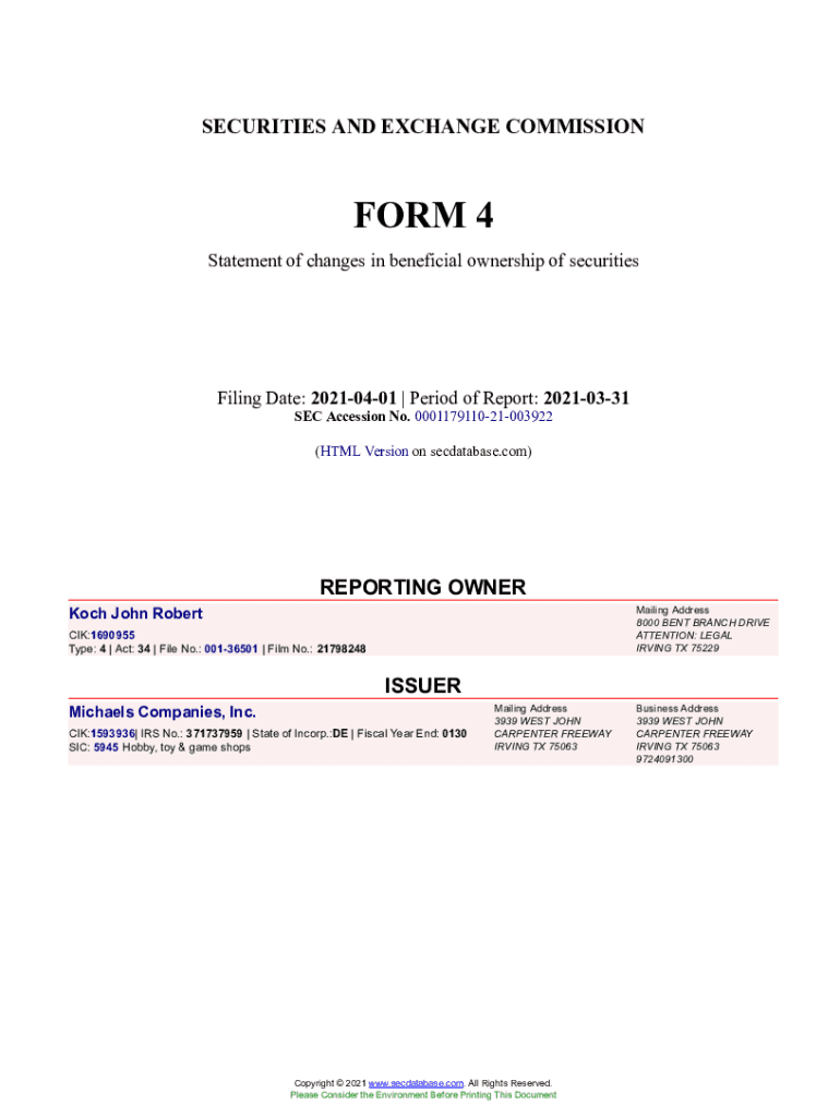 Get the free Koch John Robert Form 4 Filed 2021-04-01. Accession Number