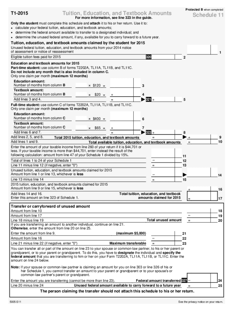 Get the free 5005-S11 T1 General 2015 - Schedule 11 - Tuition, Education, and Textbook Amounts - ...