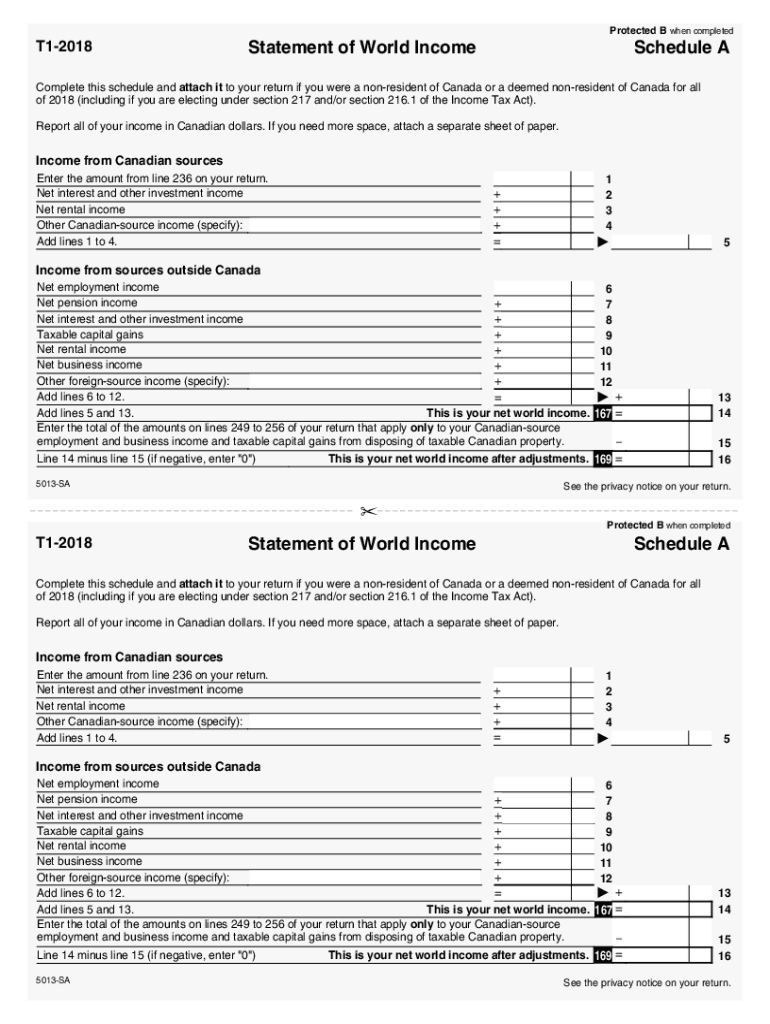 5013-SA Schedule A — Statement of World Income — Non-Residents of Canada — Non-residents and deemed residents of Canada — 2018. Choose a blank template from the list and complete it instantly.