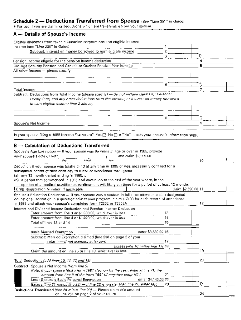 Get the free 5012-S2 Schedule NT (S2) - Deductions transferred from spouse - T1 General 1985 - No...