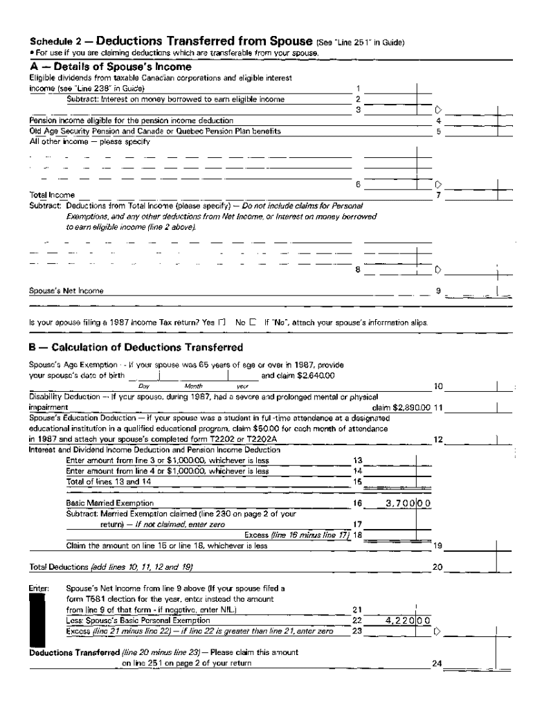 Get the free 5010-S2 Schedule BC (S2) - Deductions transferred from spouse - T1 General 1987 - Br...