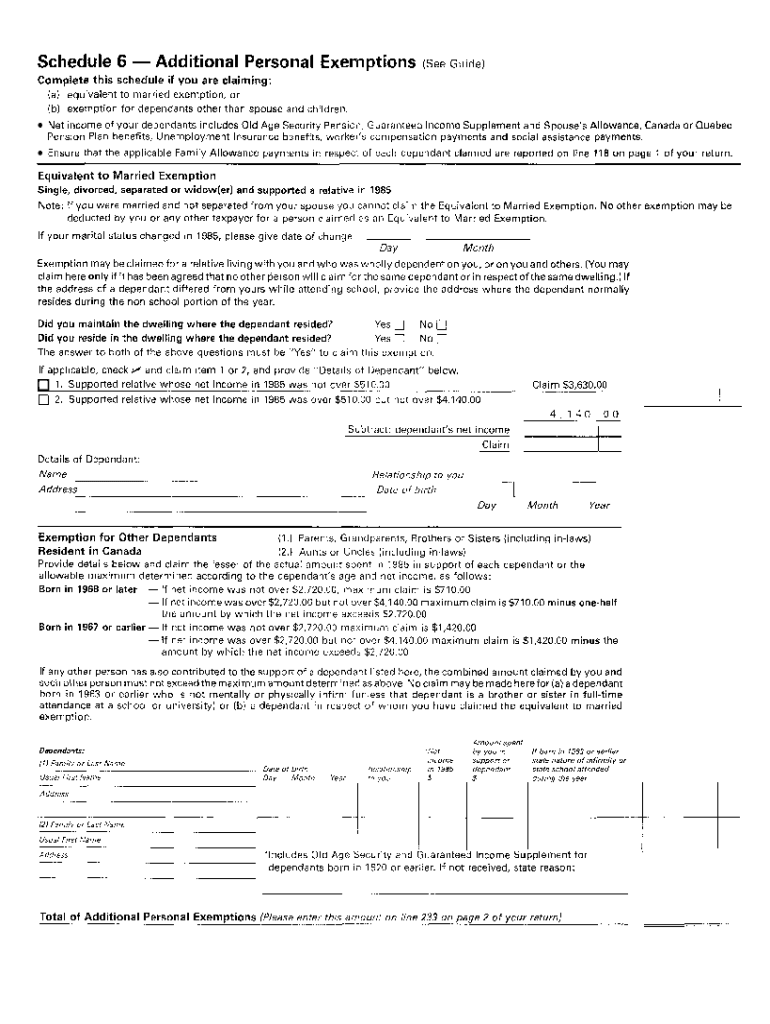 5012-S6 Schedule 6 — Northwest Territories — T1 General 1985 — Additional personal exemptions. Choose a blank template from the list and complete it instantly. Try now!