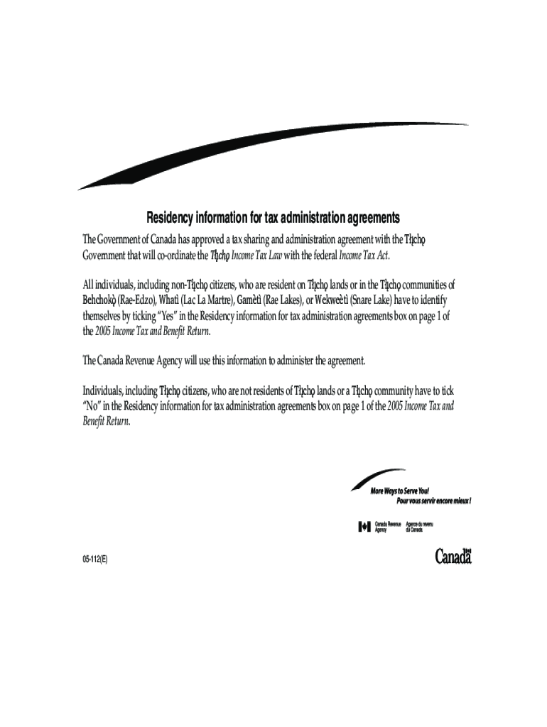 05-112 Residency information for tax administration agreements — Northwest Territories — 2005. Choose a blank template from the list and complete it instantly. Try now!
