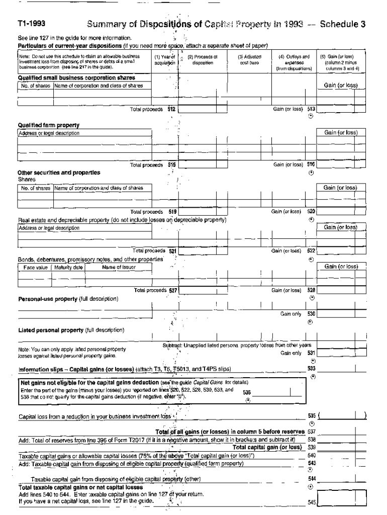 5011-S3 Schedule 3 — Yukon — T1 General 1993 — Summary of dispositions of capital property. Choose a blank template from the list and complete it instantly. Try now!