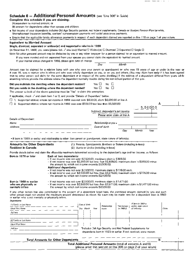 5012-S6 Schedule 6 — Northwest Territories — T1 General 1988 — Additional personal amounts. Choose a blank template from the list and complete it instantly. Try now!