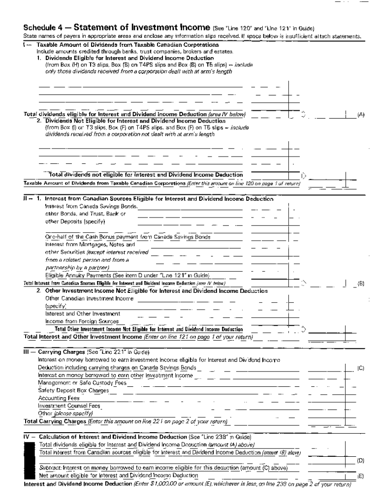 5010-S4 Schedule 4 — British Columbia — T1 General 1986 — Statement of investment income. Choose a blank template from the list and complete it instantly. Try now!