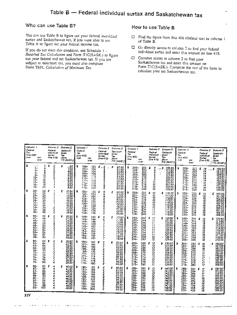 5008-TABLE-B Table B 1992 Federal individual surtax and basic income tax — Saskatchewan. Choose a blank template from the list and complete it instantly. Try now!
