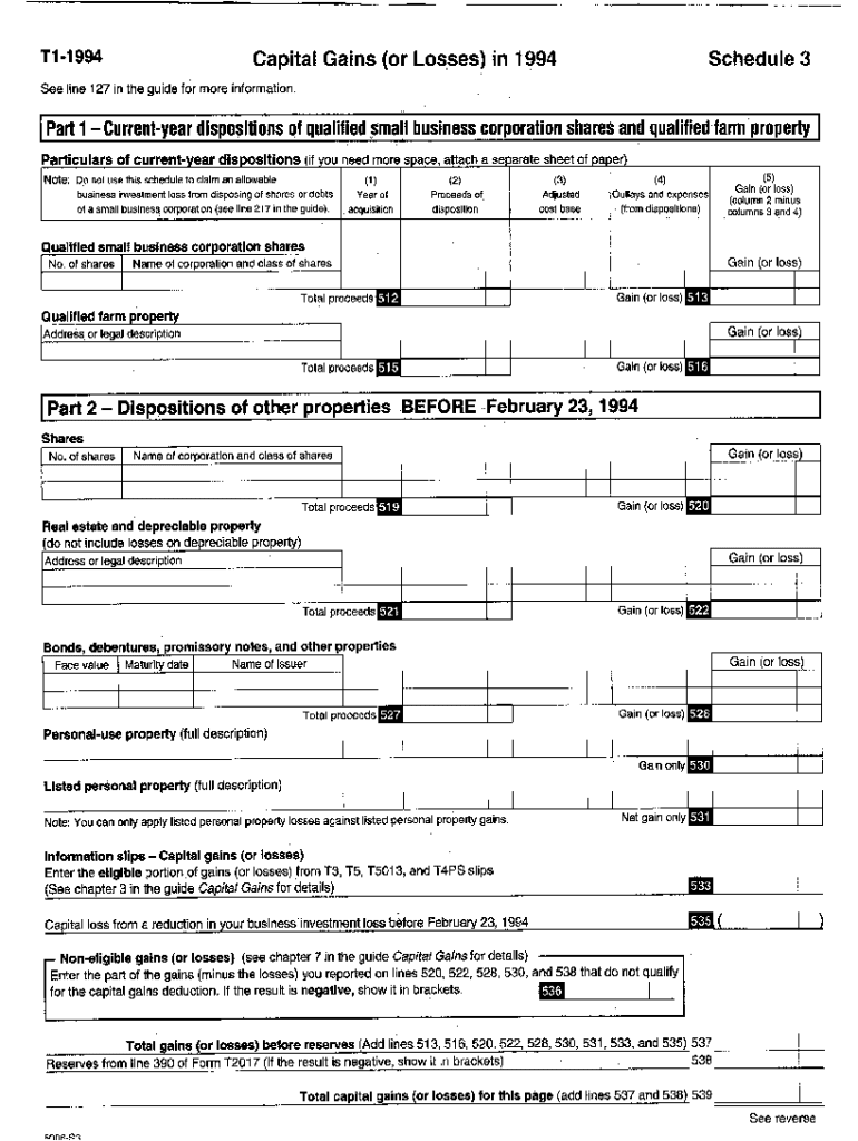 5001-S3 Schedule 3- Newfoundland — T1 General 1994 — Capital gains (or losses) in 1994. Choose a blank template from the list and complete it instantly. Try now!