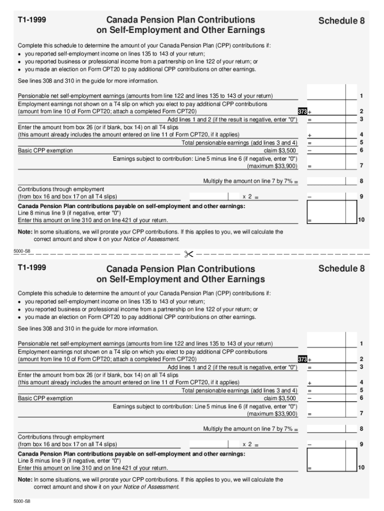 5000-S8 T1 General 1999 Schedule 8 — Common (Except Quebec) — Non-residents of Canada. Choose a blank template from the list and complete it instantly. Try now!