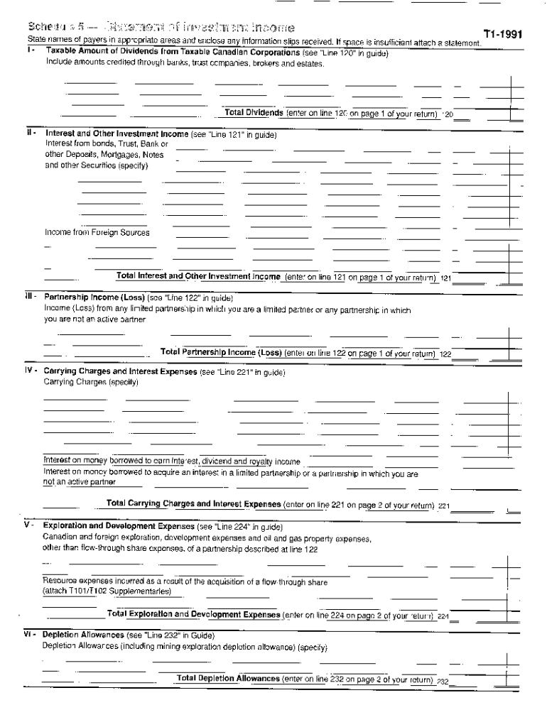 5004-S5 Schedule 5 — New Brunswick — T1 General 1991 — Statement of investment income. Choose a blank template from the list and complete it instantly. Try now!